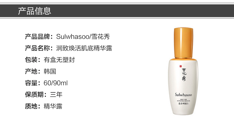 商品名称:【香港直邮】韩国雪花秀sulwhasoo润致焕活肌底精华露润燥精华90ml*2