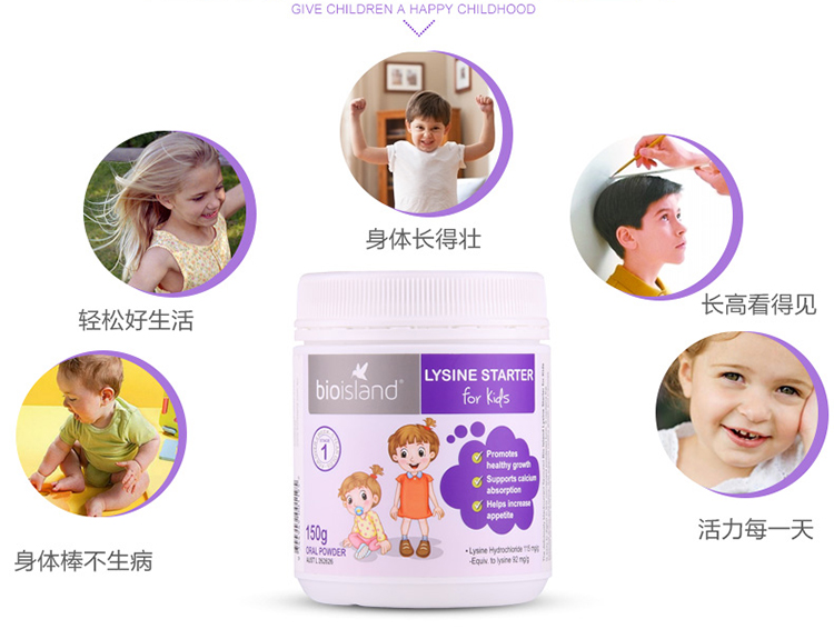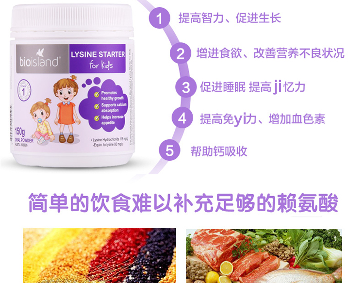 商品名称:【跨境保税】Bioisland 婴幼儿赖氨酸黄金成长素1段(28天-5岁)150g