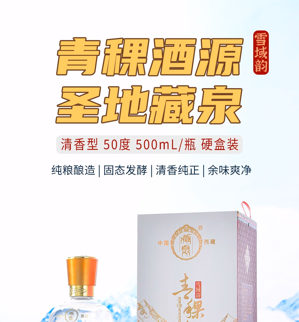 商品名称:藏泉西藏青稞特产雪域韵清香型白酒礼盒50度500mL*6瓶/箱