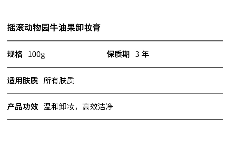 商品名称:摇滚动物园牛油果净透晚安卸妆膏100g