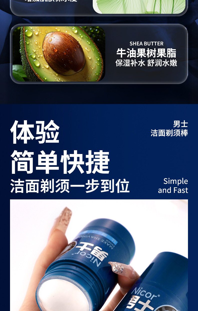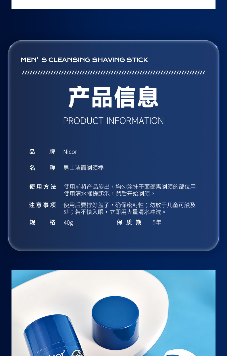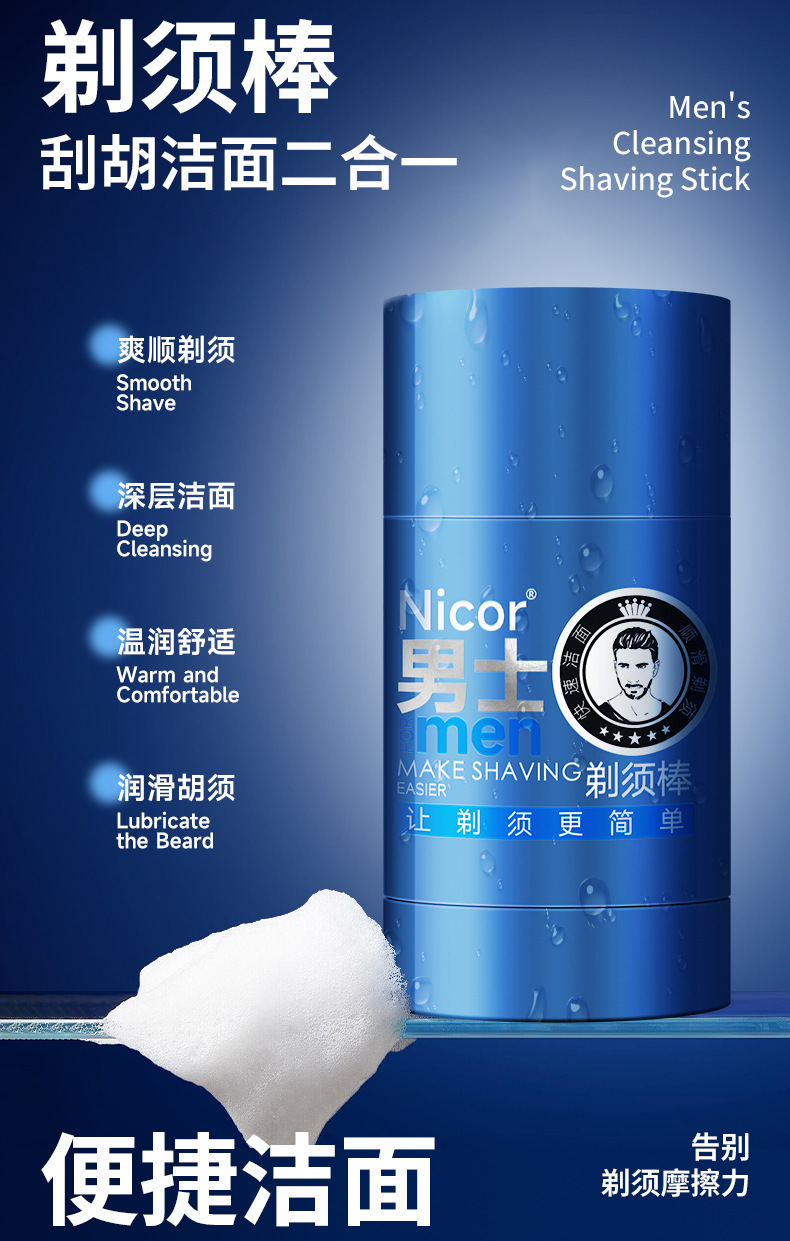 商品名称:Nicor男士剃须棒温和无刺激软化胡子固体剃须膏泡沫洗面奶洁面乳学生洗面奶男士护肤品