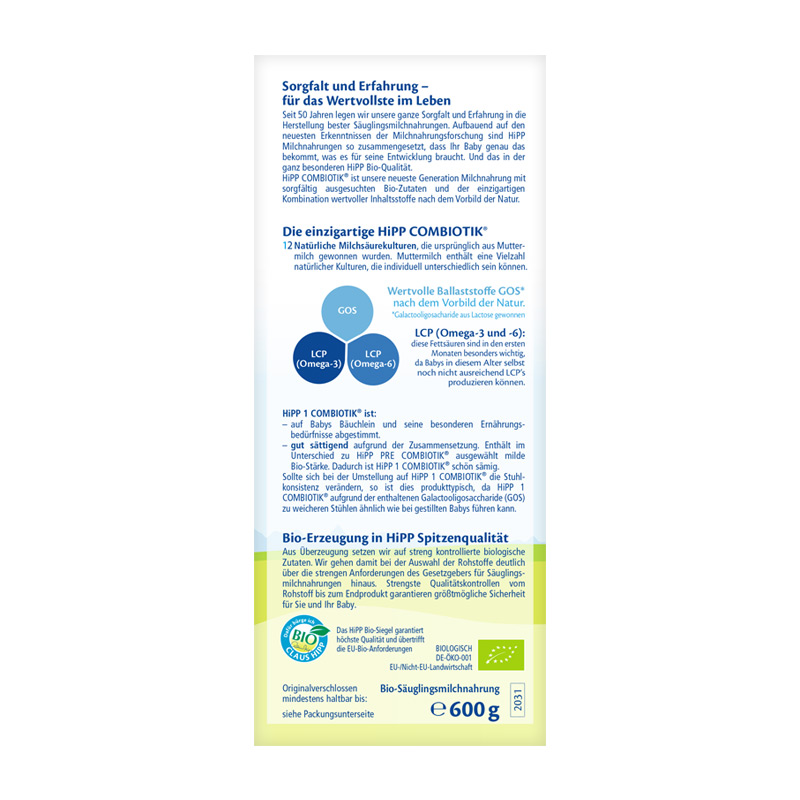 商品名称:德国Hipp BIO喜宝益生菌奶粉1段(3-6个月宝宝)600g *2