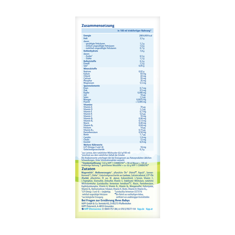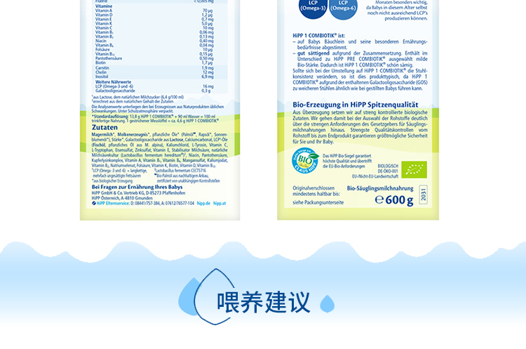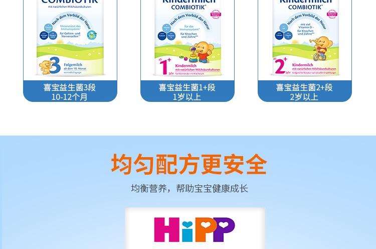 商品名称:德国HiPP BIO喜宝益生菌奶粉1段 (3-6个月宝宝)600g*4