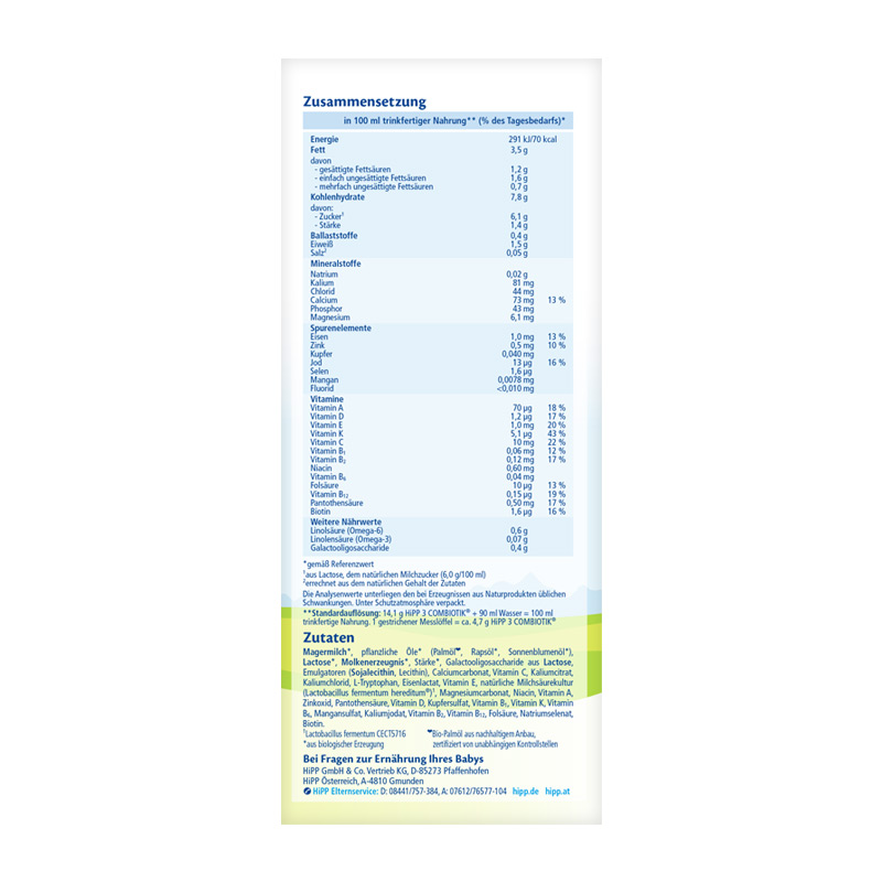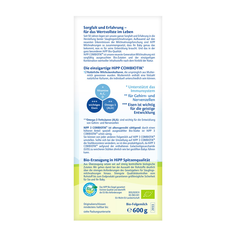 商品名称:德国HiPP BIO喜宝益生菌奶粉3段(10-12个月宝宝)600g【1盒起发】