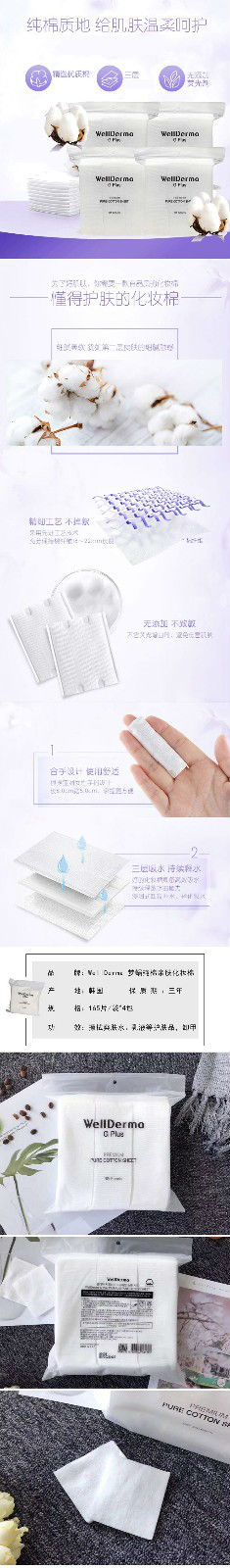 商品名称:韩国wellderma丝柔化妆棉165片装 两包装
