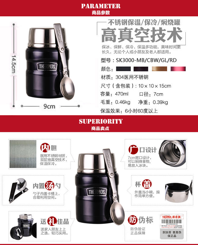 商品名称:膳魔师真空焖烧杯SK-3000-3020-ALL