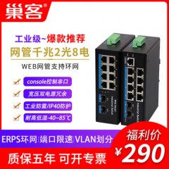 巢客 网管型工业交换机WEB网管千兆2光8电交换机支持ERPS环网VLAN划分导轨式带串口RSTP环网工业级网管交换机