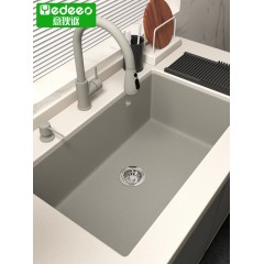 意狄讴灰色厨房石英石水槽洗菜盆洗碗大单槽花岗岩台中台下盆斗
