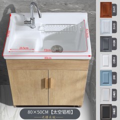 华仕艾肯太空铝洗衣柜加深陶瓷洗衣池带搓衣板洗漱台不锈钢阳台柜