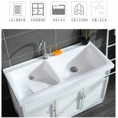 华仕洗衣柜一体双盆人造石英石洗衣池带搓板阳台太空铝浴室柜