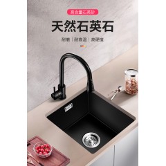 黑色吧台石英石水槽单槽小号厨房台下洗菜盆岛台嵌入式洗碗水池大