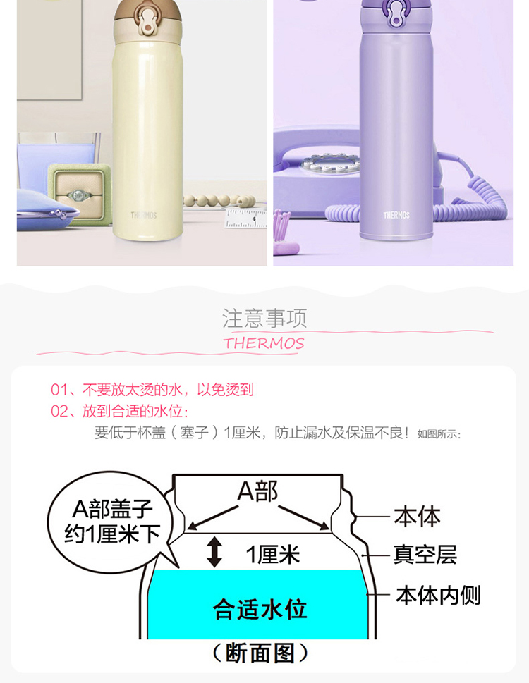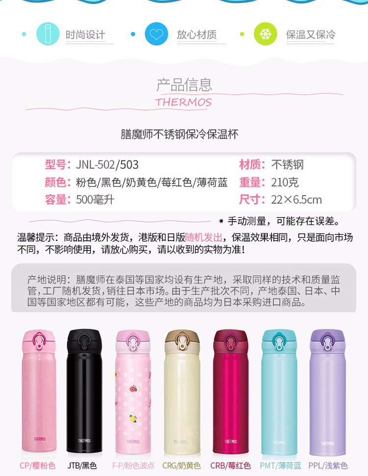 商品名称:2019新款! 日本膳魔师保温杯便携超轻不锈钢水杯子JNL-504 浅蓝色 500ml