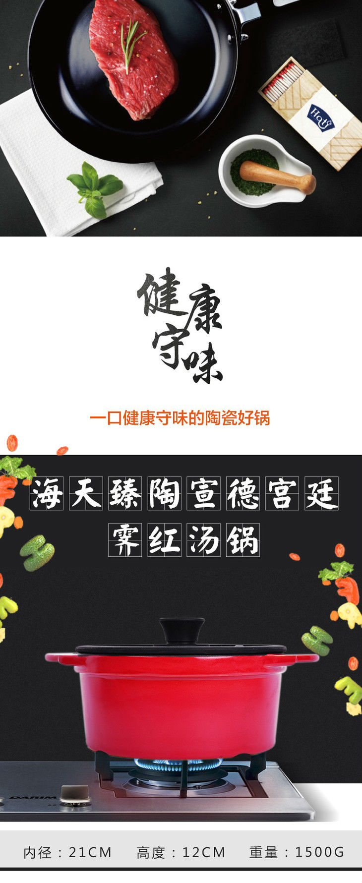 商品名称:海天臻陶宣德宫廷 霁红汤锅
