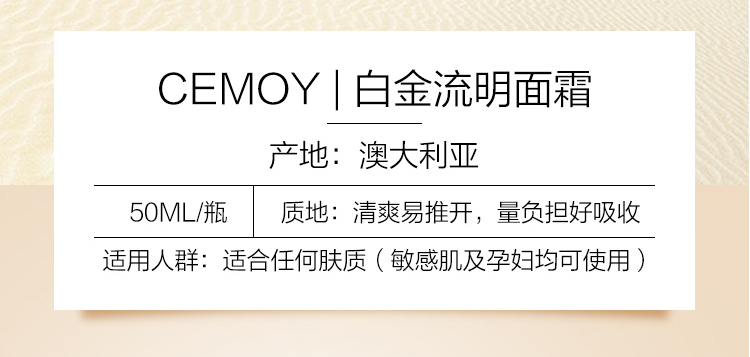 商品名称:澳洲CEMOY白金流明肌底精修护精华霜50ml
