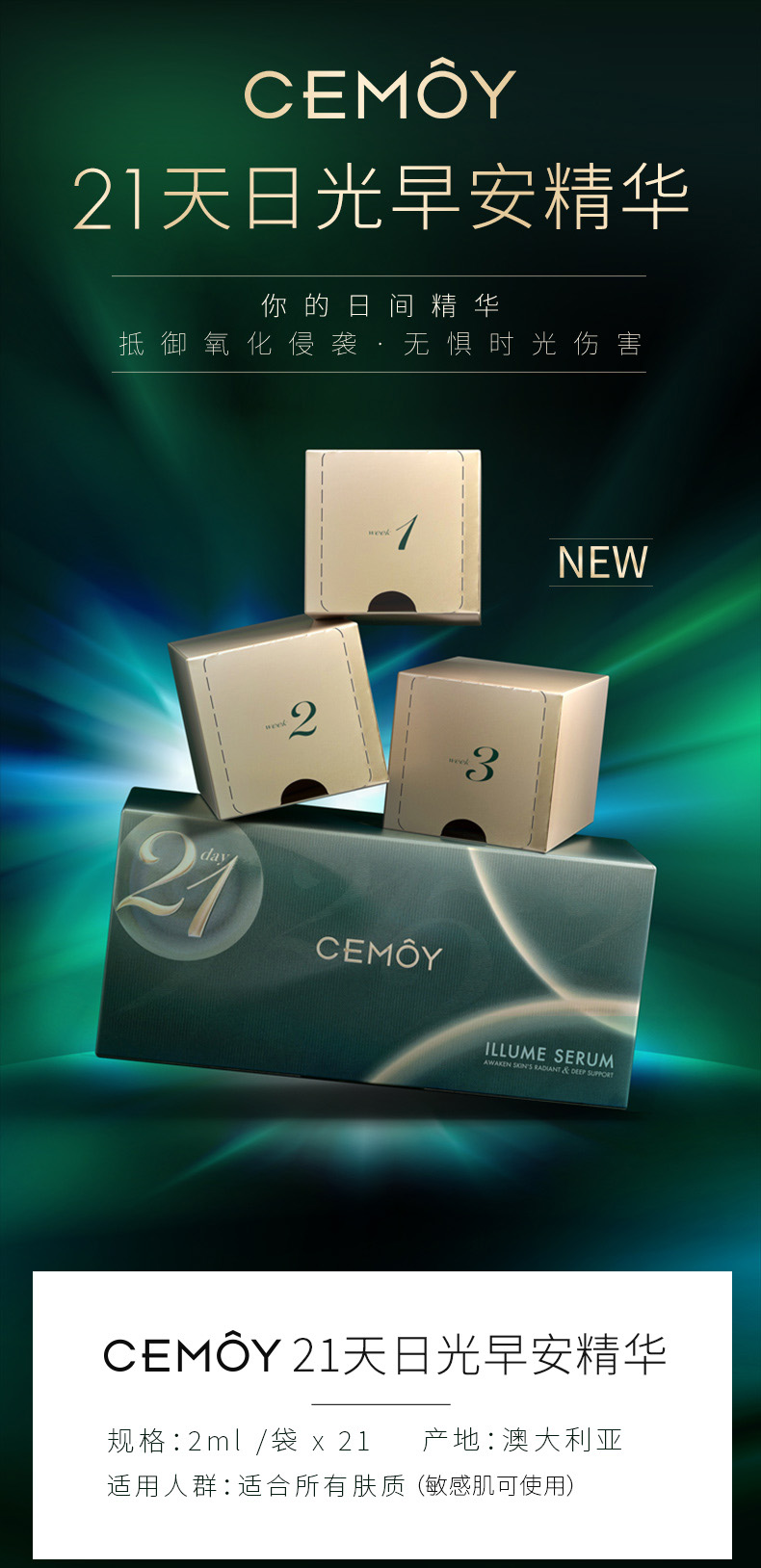 澳洲CEMOY 21天日光早安精华抵御氧化21片盒