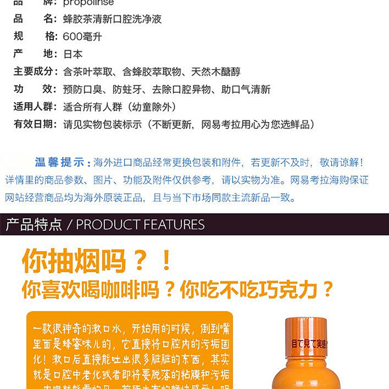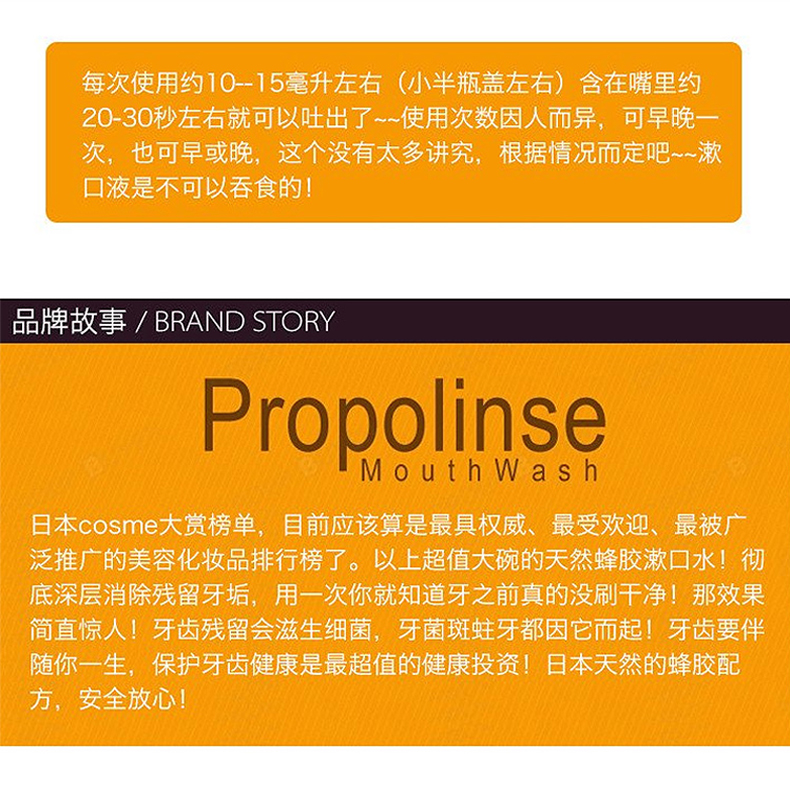 商品名称:【保税商品】日本Propolinse 比那氏蜂胶漱口水 600ml