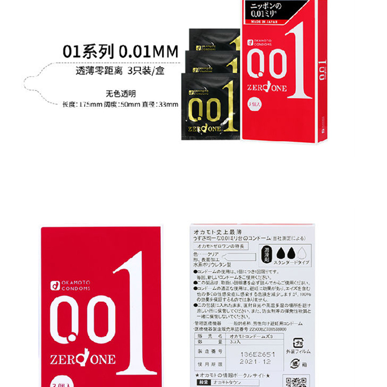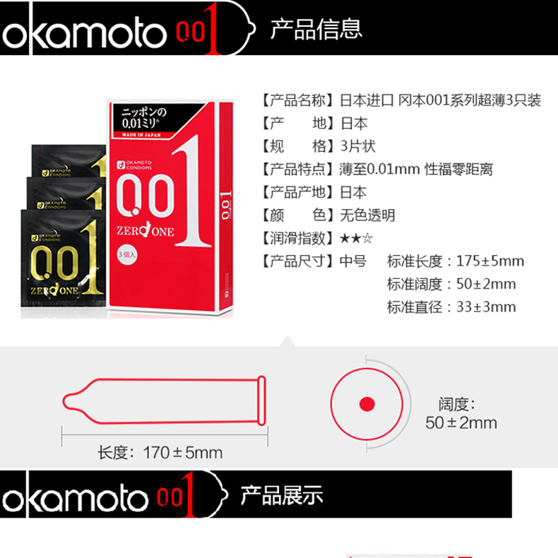 商品名称:冈本001避孕套超薄系列3只装