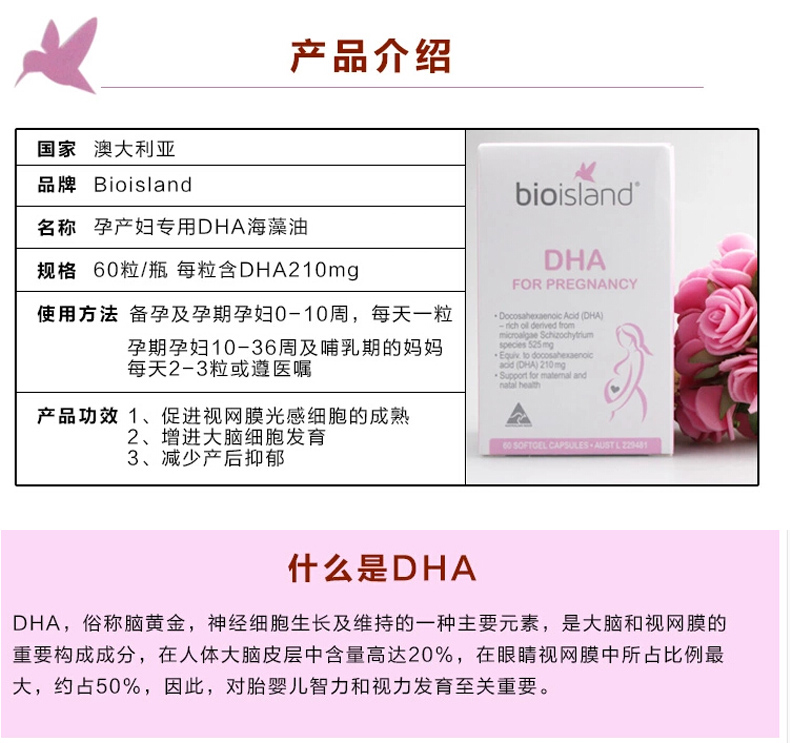 商品名称:【保税区】Bio Island 孕妇专用DHA海藻油 60粒