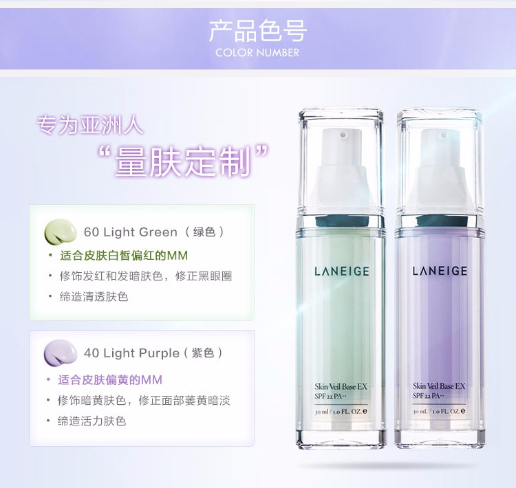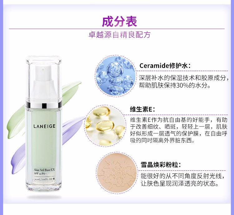 商品名称:韩国 LANEIGE兰芝雪纱防晒隔离霜绿色 30ml