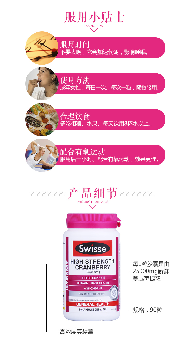 商品名称:【全球购】2瓶装 Swisse 蔓越莓精华胶囊 90粒 保税仓