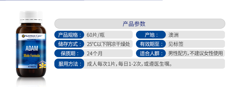 商品名称:【全球购】2瓶装 Nutrition Care亚当锌硒片 60粒 保税仓
