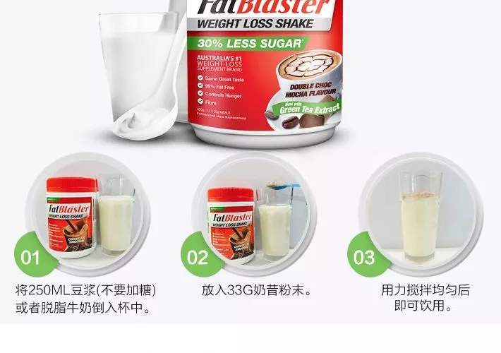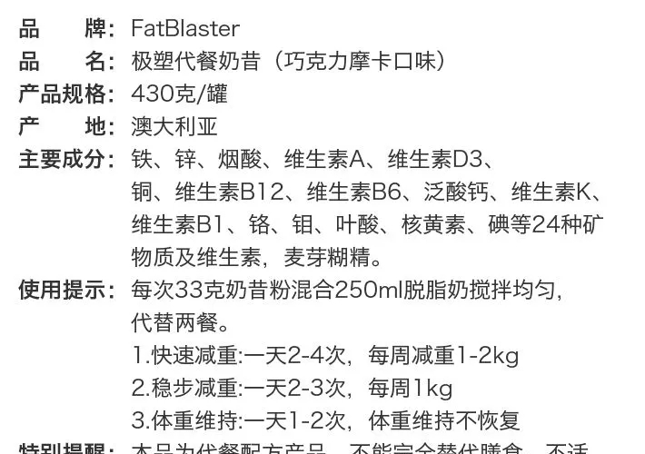 商品名称:FatBlaster 极塑 摩卡味甩脂奶昔 430克/罐(30%减糖)