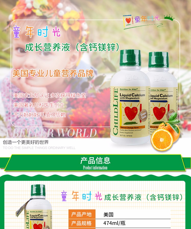 商品名称:美国童年时光Childlife 钙镁锌口服液474ml 两瓶装