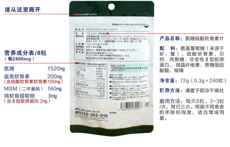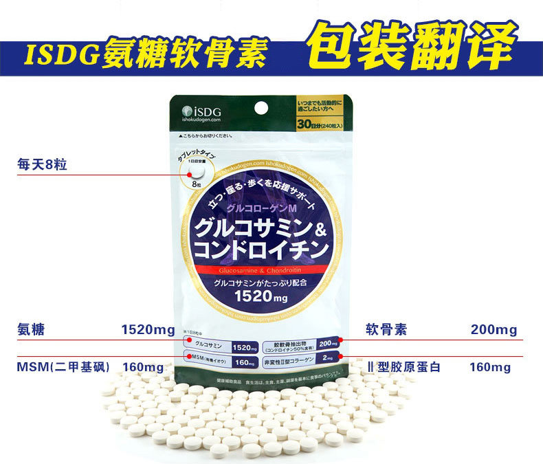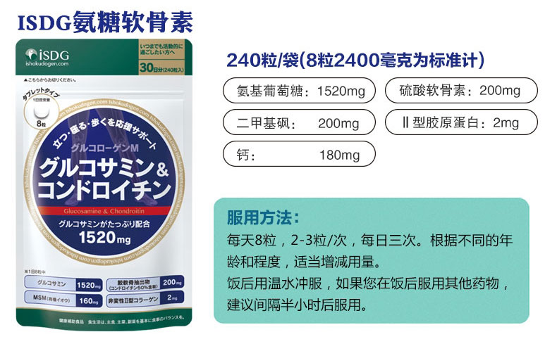 商品名称:日本ISDG氨糖软骨素 240粒/袋