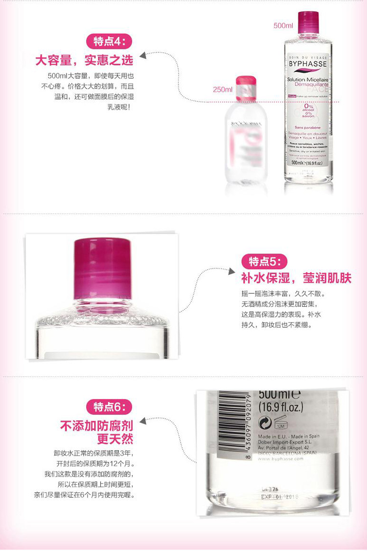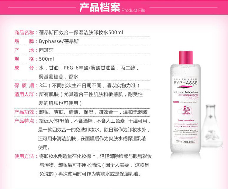 商品名称:西班牙蓓昂斯四效合一卸妆水500ml 两瓶装