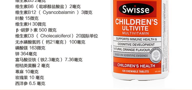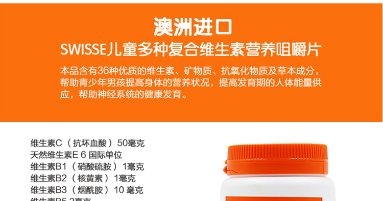 商品名称:澳洲swisse儿童复合维生素矿物质咀嚼片 120片 两瓶装