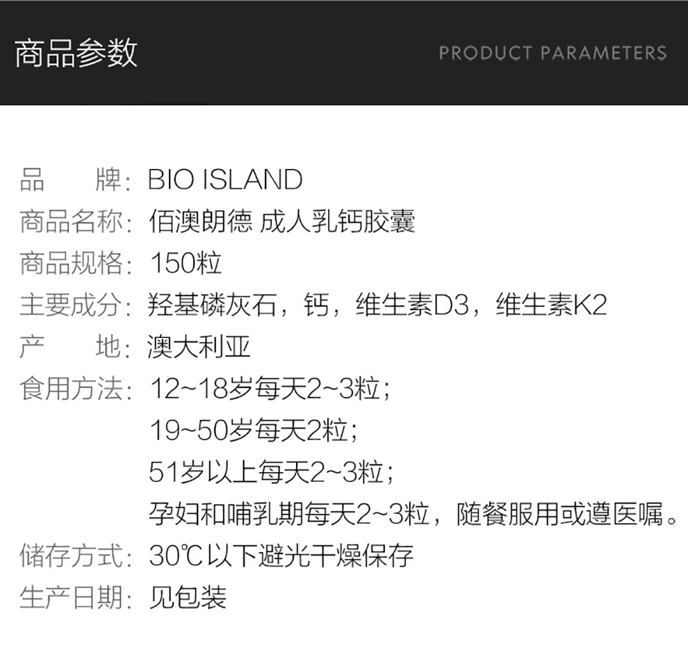 商品名称:Bio Island 乳钙 150粒