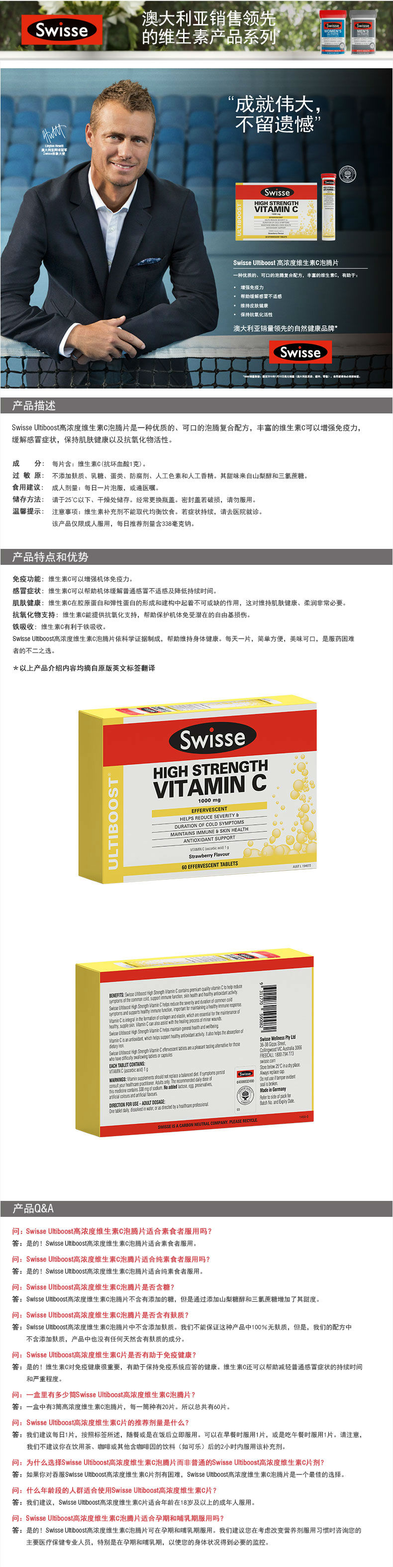 商品名称:Swisse 高强度维生素C泡腾片 60片