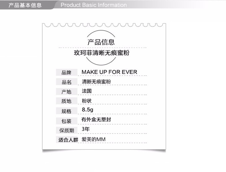 商品名称:MAKE UP FOR EVER/浮生若梦 全新清晰无痕蜜粉