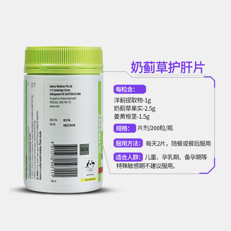 商品名称:Swisse 护肝片奶蓟草片 200粒