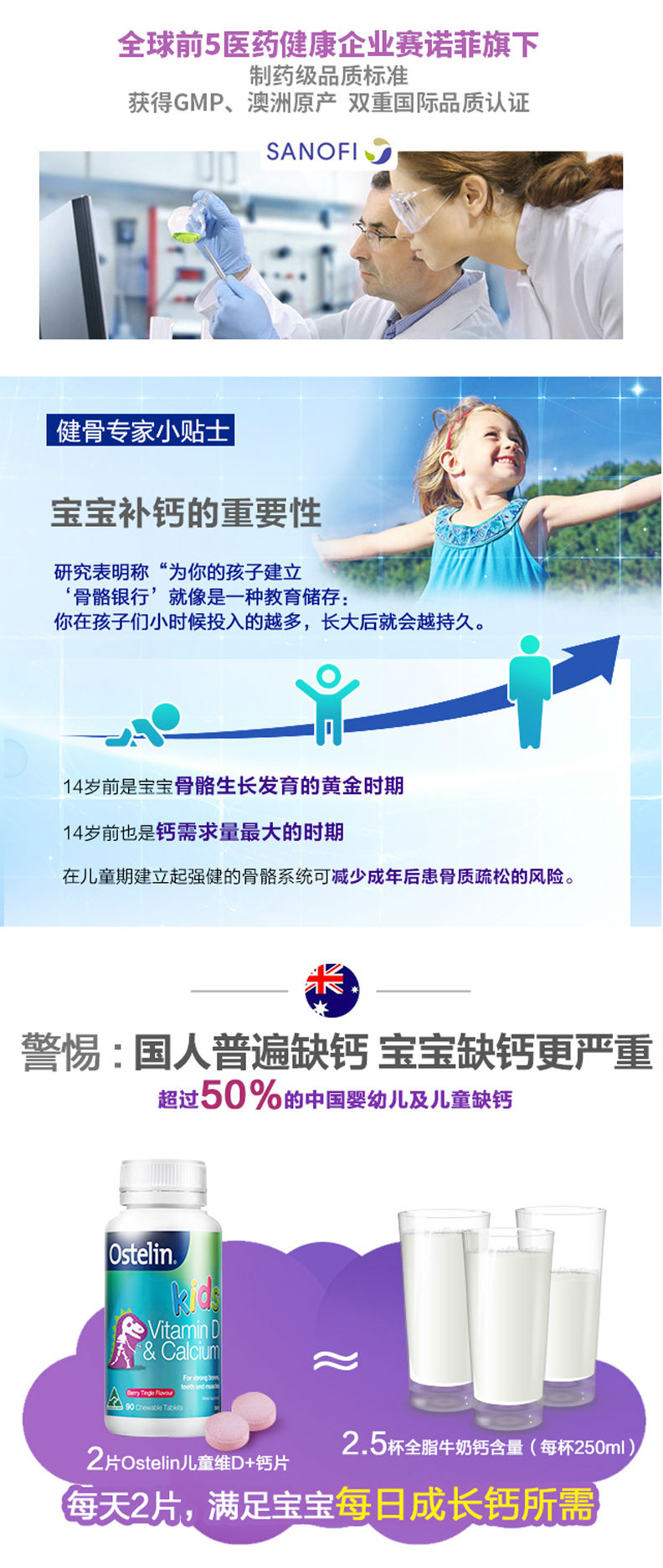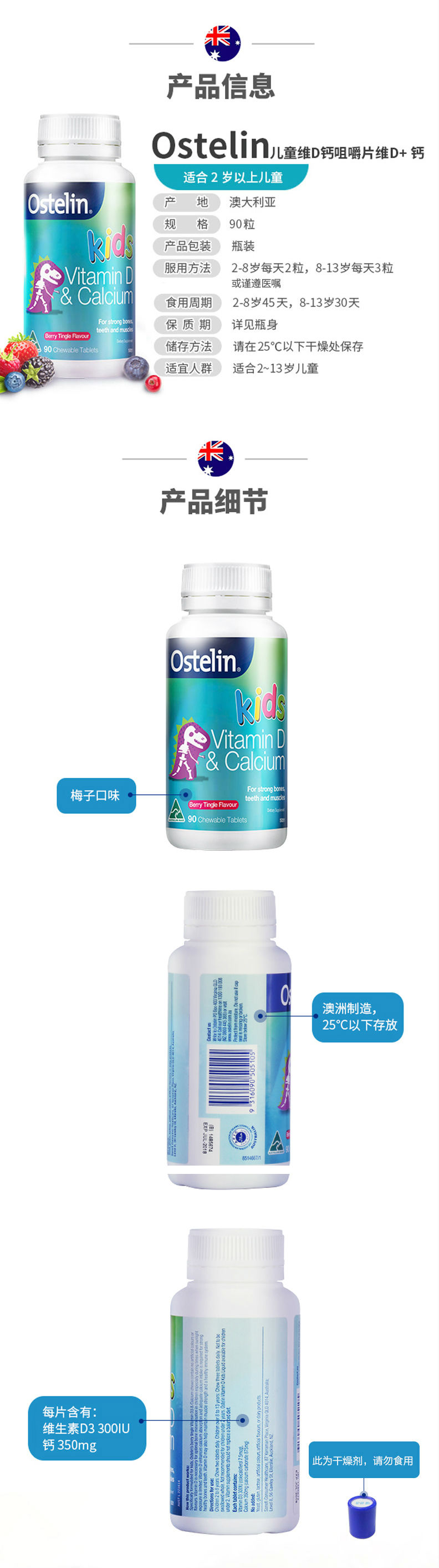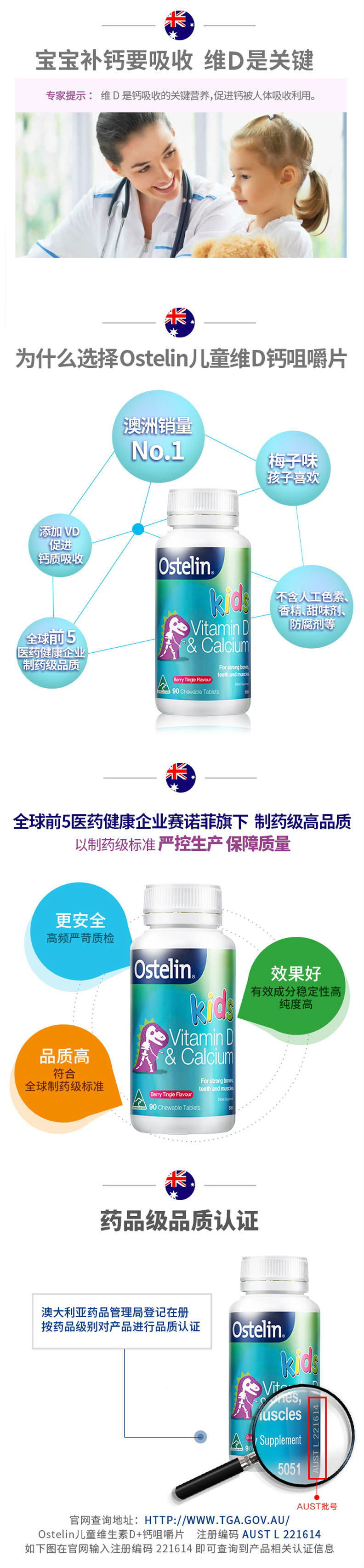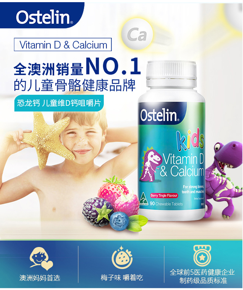 商品名称:Ostelin 奥斯特林 儿童维生素D+钙 恐龙钙 90粒 新老包装随机发货