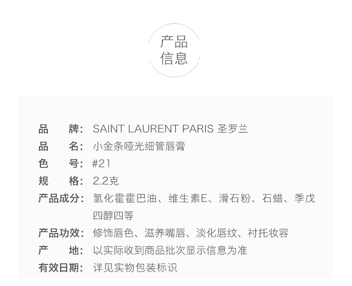 商品名称:【香港直邮】圣罗兰细管口红哑光雾面唇膏小金条21#