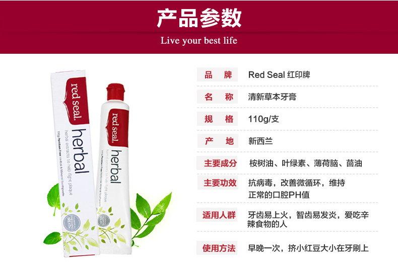 商品名称:【香港直邮】新西兰红印烟民牙膏去烟渍100g 五只装