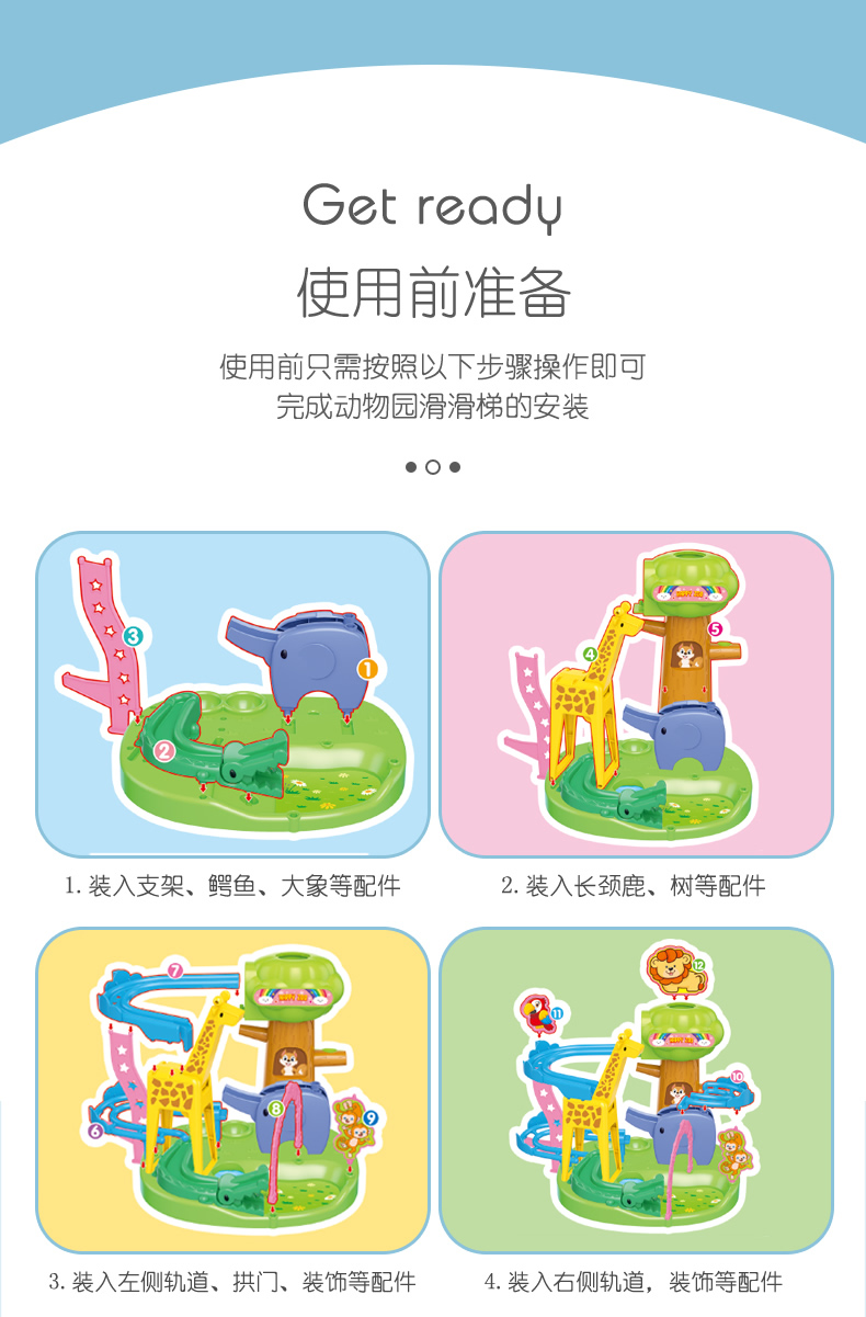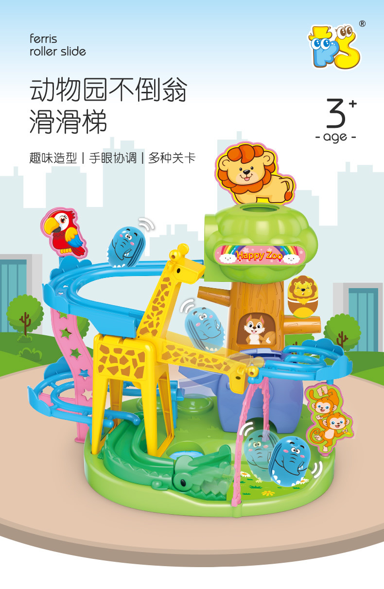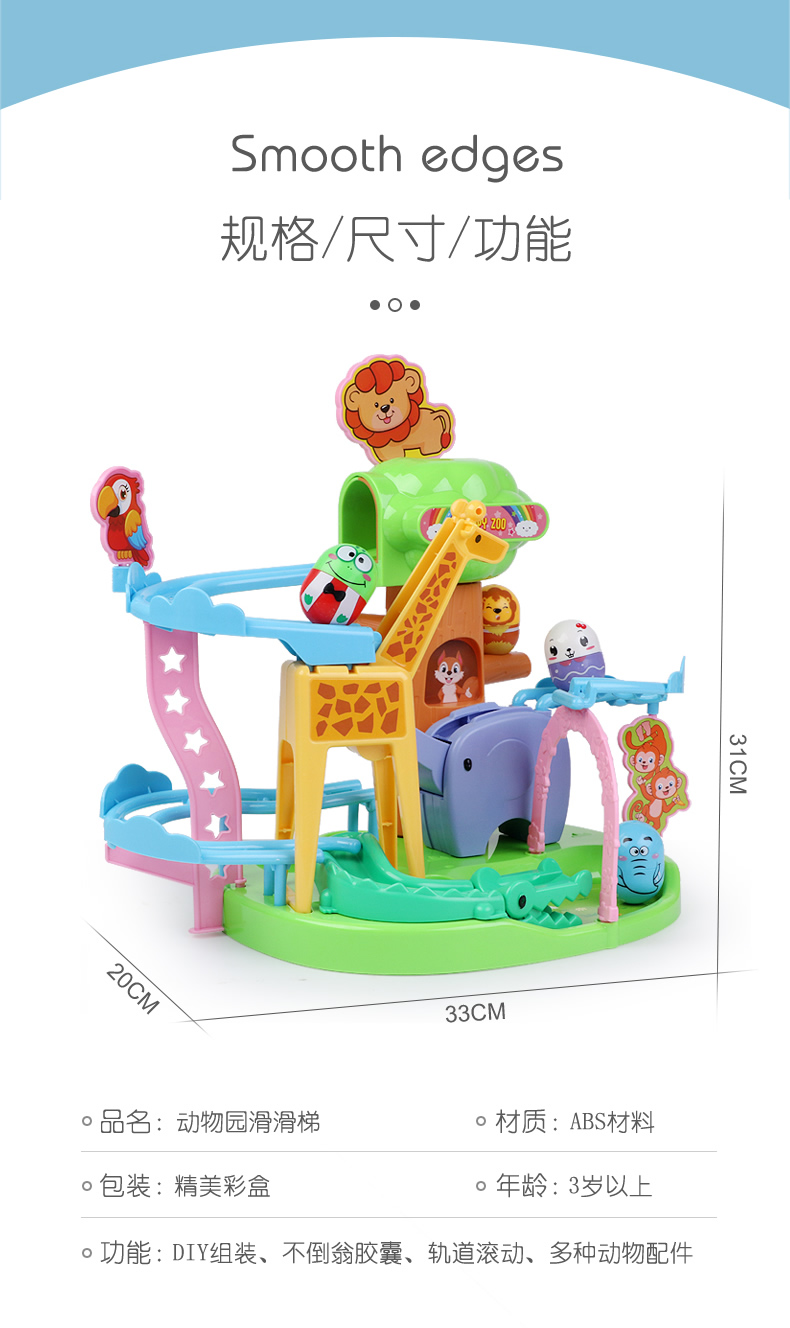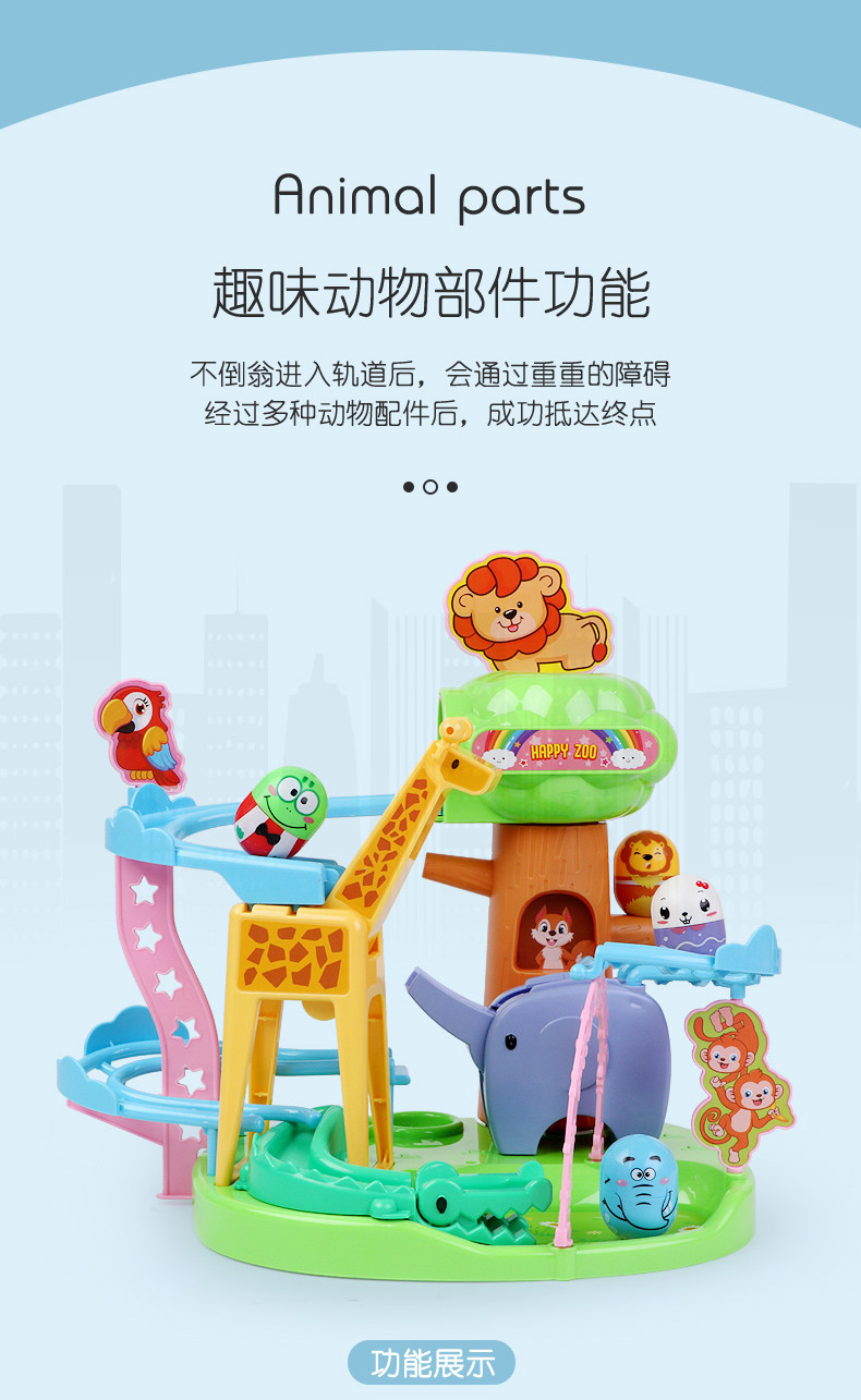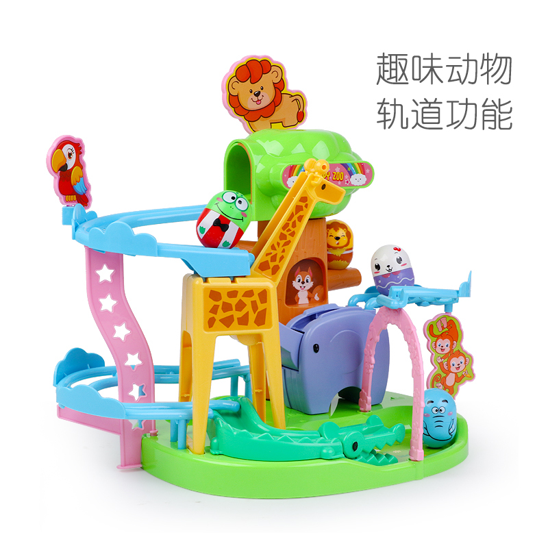 商品名称:五星动物园不倒翁滑滑梯滚珠轨道趣味组装长颈鹿滑梯