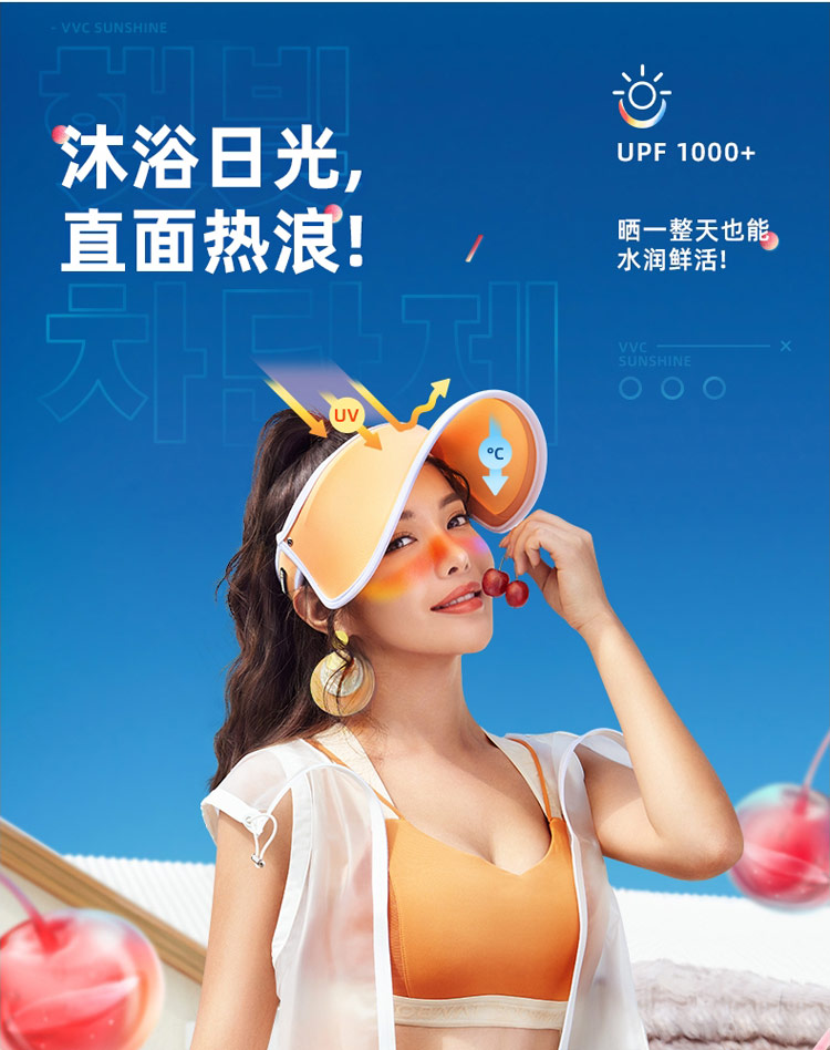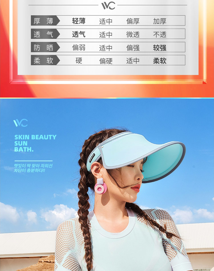 韩国VVC成人防晒帽子可调节角度宽檐帽青春帽日光橙