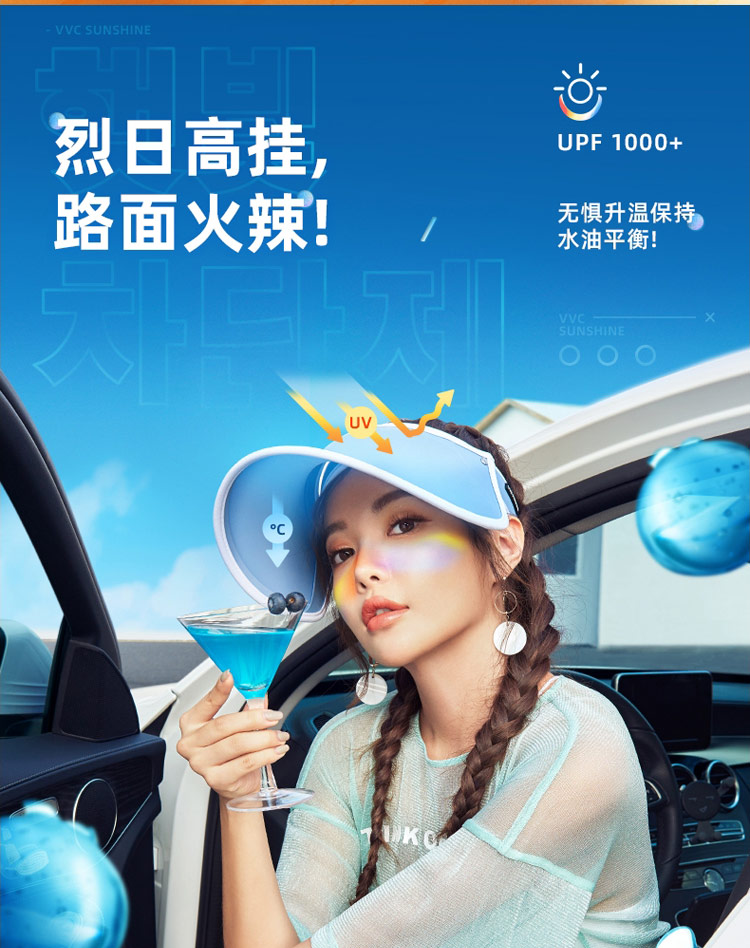 商品名称:韩国VVC成人防晒帽子可调节角度宽檐帽青春帽灰度蓝