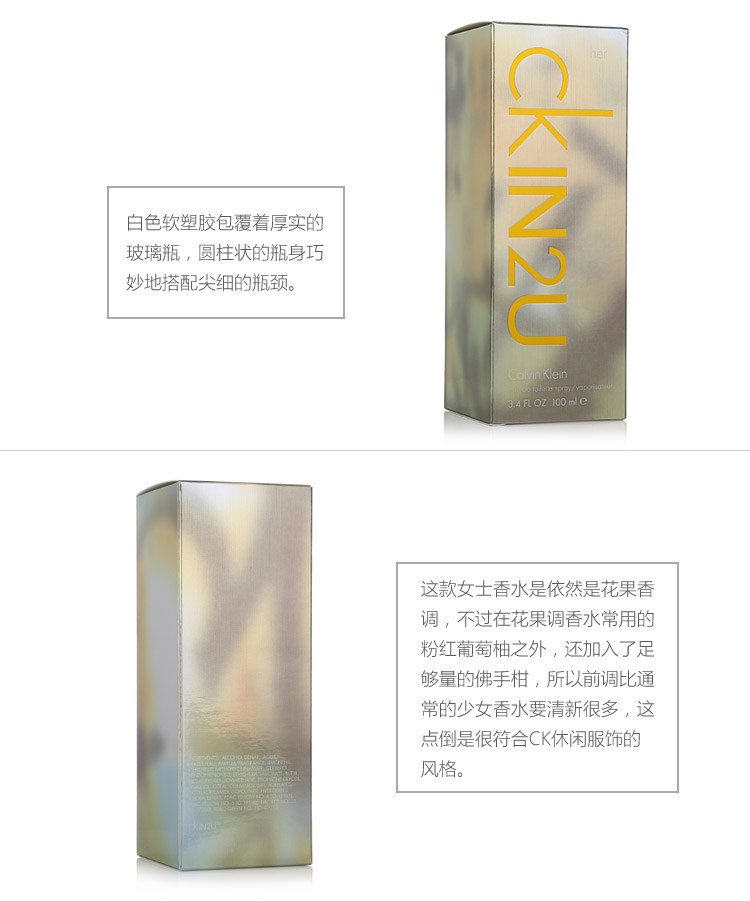商品名称:(香港直邮)美国卡文克莱 Calvin Klein IN2U 因为你 CK女士香水100ml