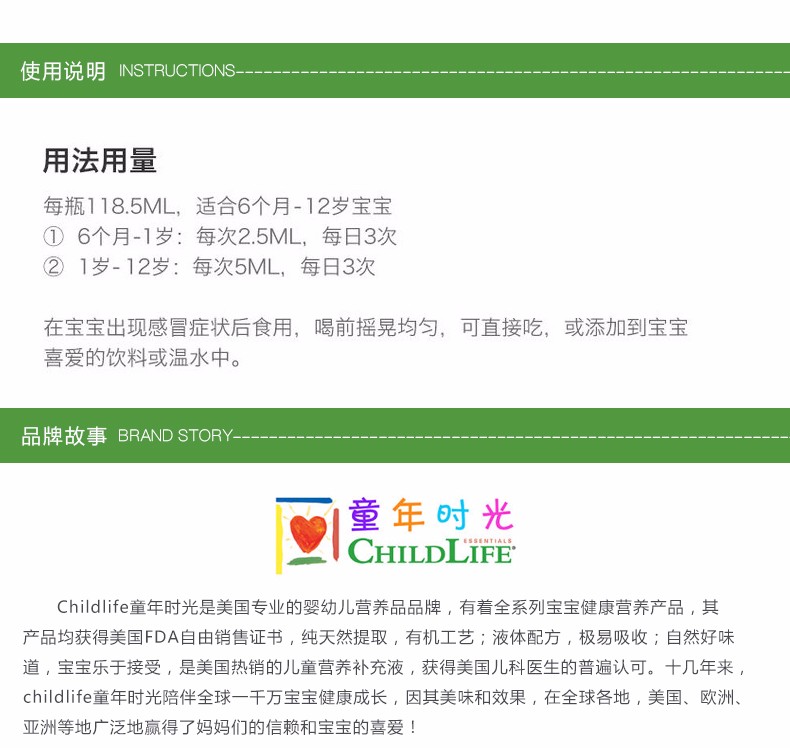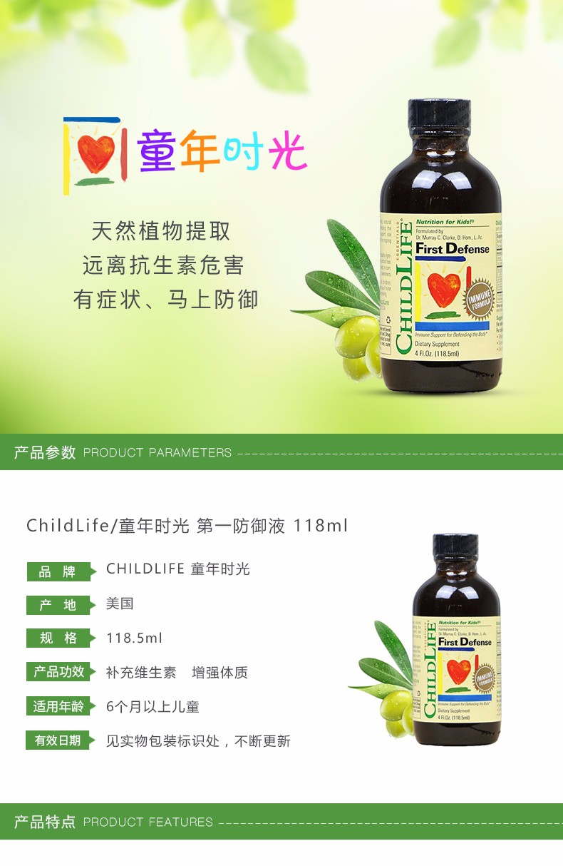 商品名称:【香港直邮】ChildLife/童年时光 第一防御液 118ml 版【版本随机】