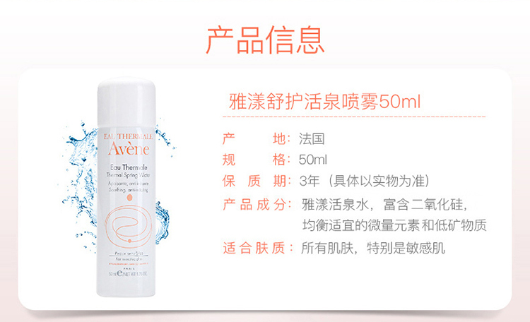 商品名称:法国Avene雅漾舒护调理喷雾50ml*2