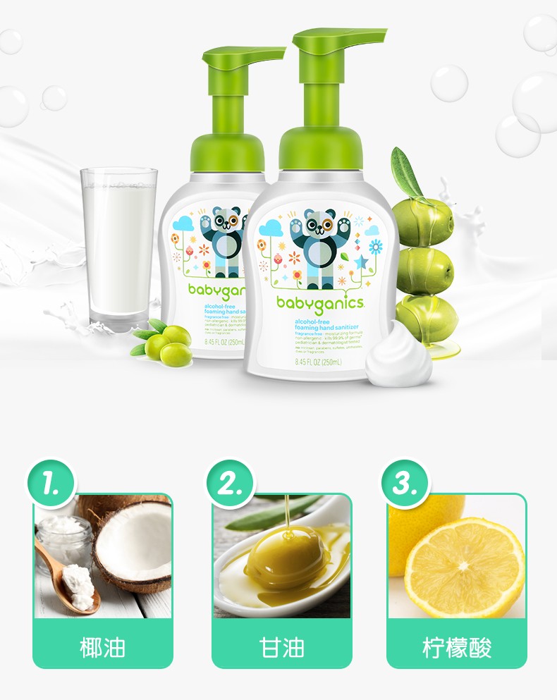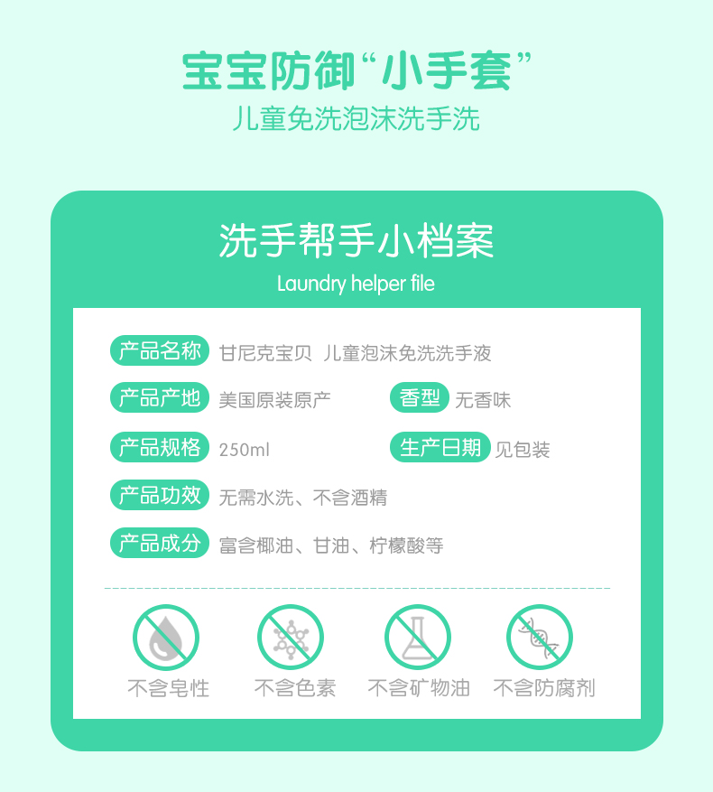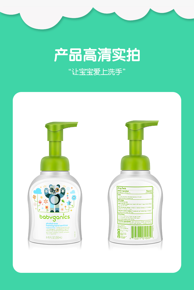 商品名称:保税 美国Baby Ganics甘尼克宝贝泡沫免洗洗手液250ml(无香)