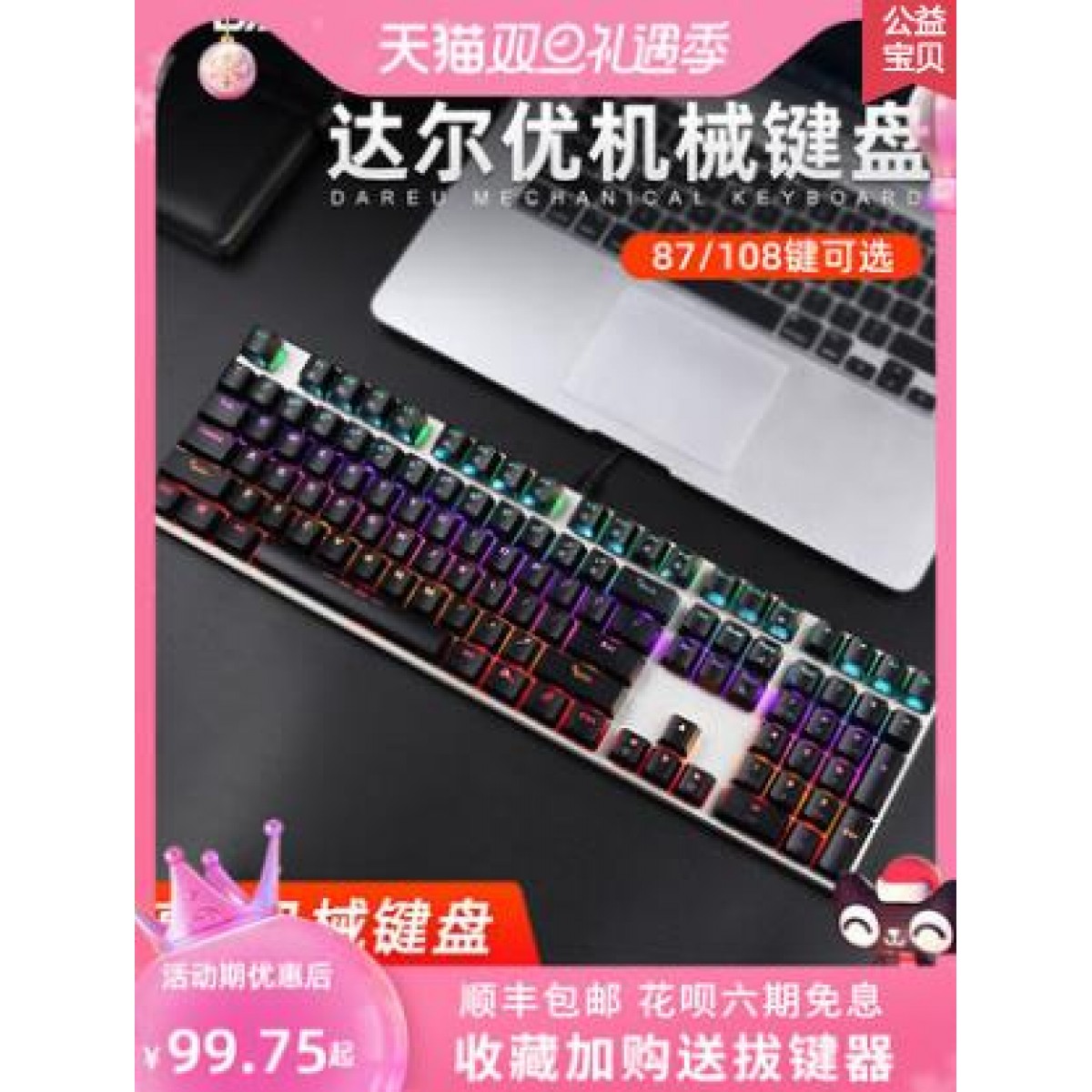 【顺丰包邮】达尔优牧马人EK815机械合金版机械键盘有线笔记本台式电脑游戏青轴黑轴87键红轴打字茶轴