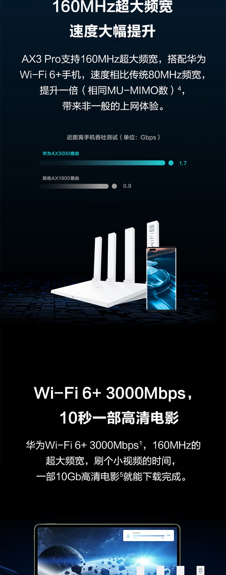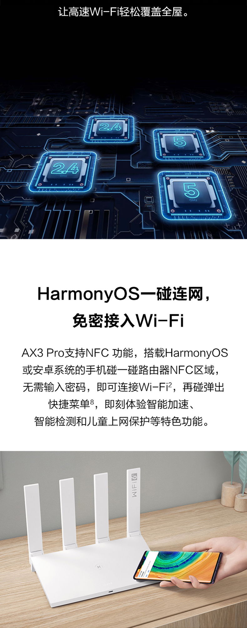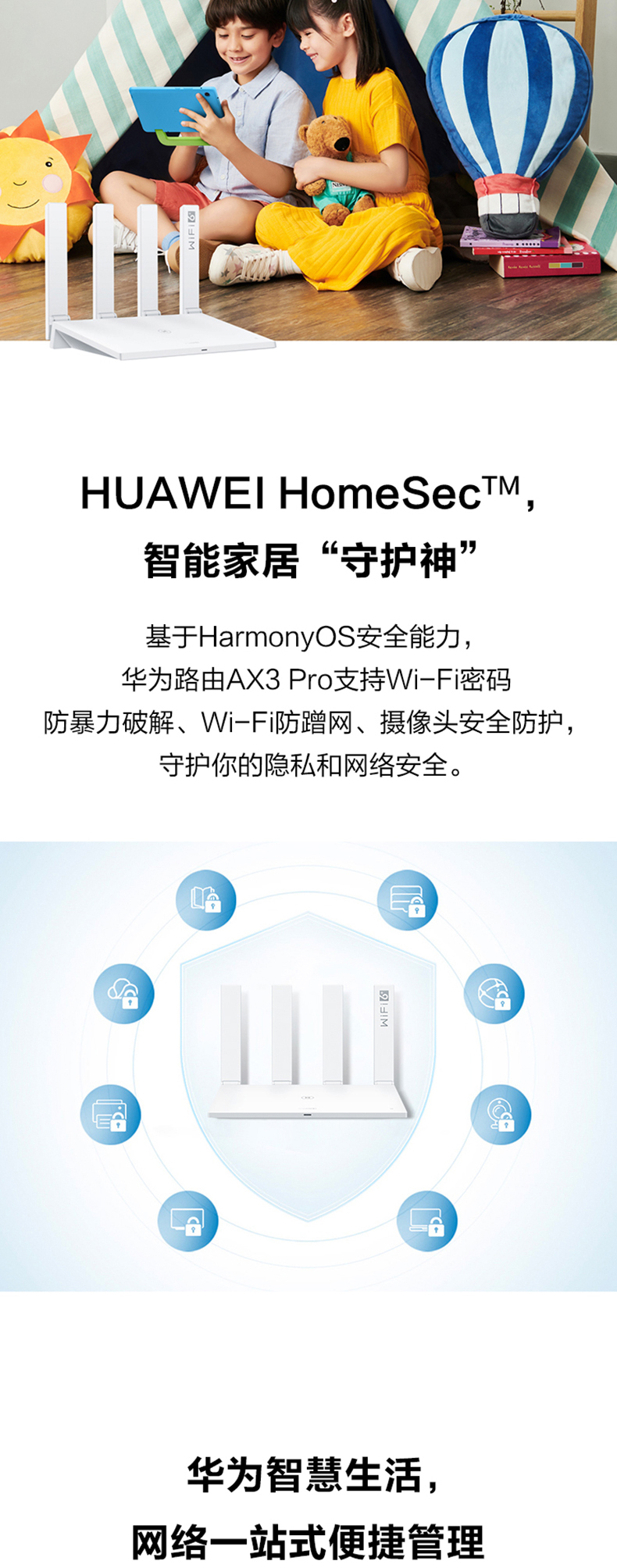 商品名称:华为路由AX3 Pro wifi 6+千兆端口3000M无线速率上网保护碰联网学生家用高速路由5G双频