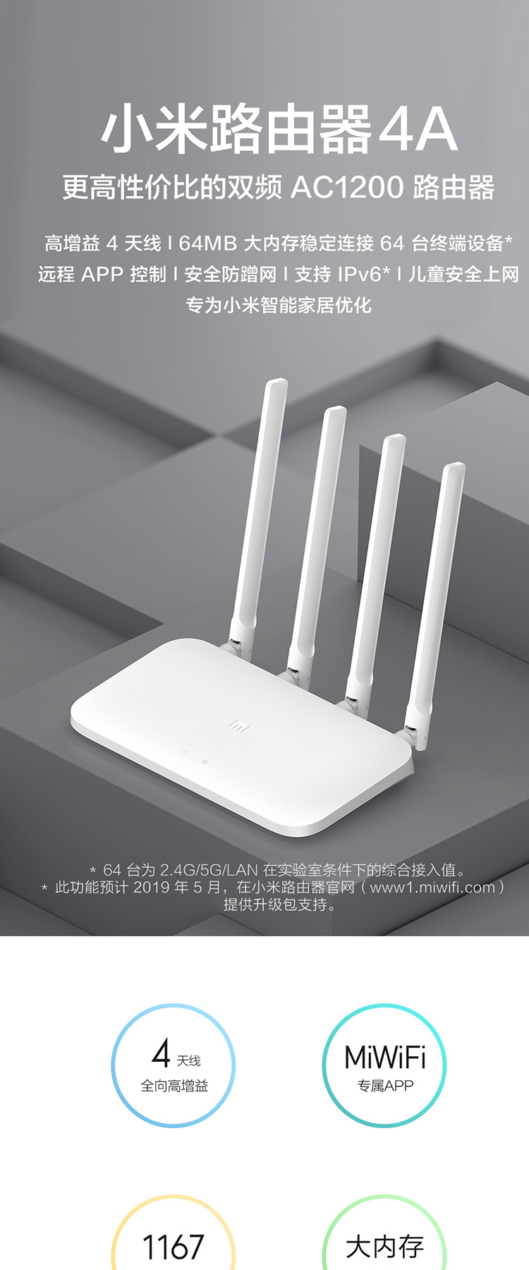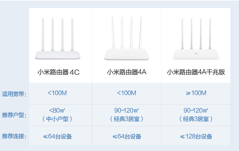 商品名称:小米路由器4A百兆千兆版无线wifi双频端口家用高速稳定穿墙王智能