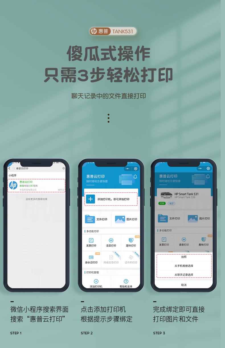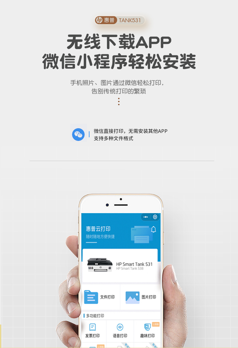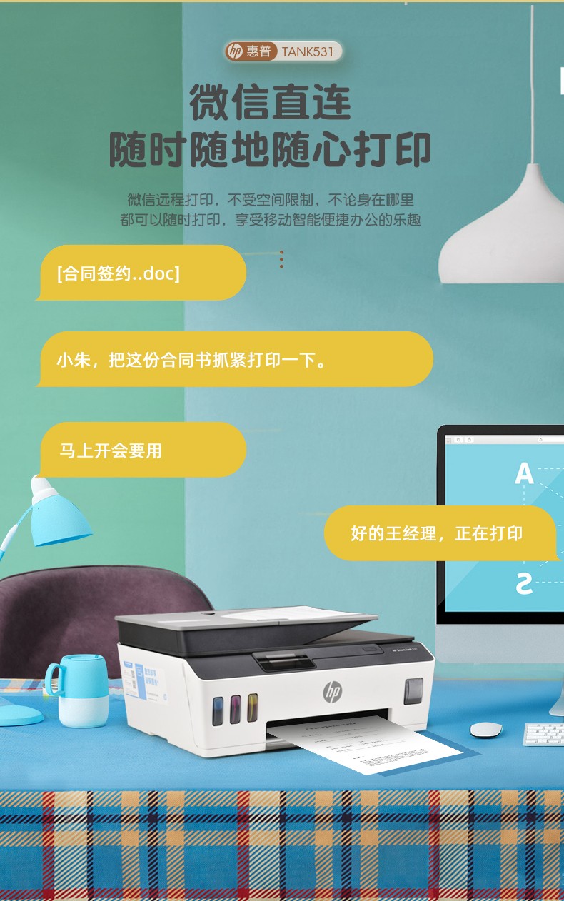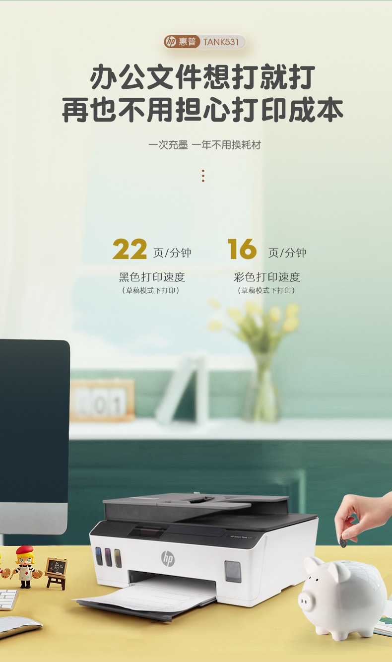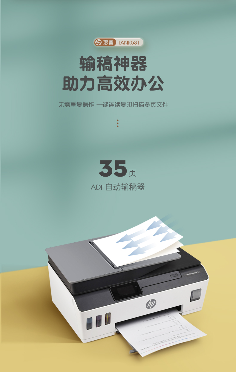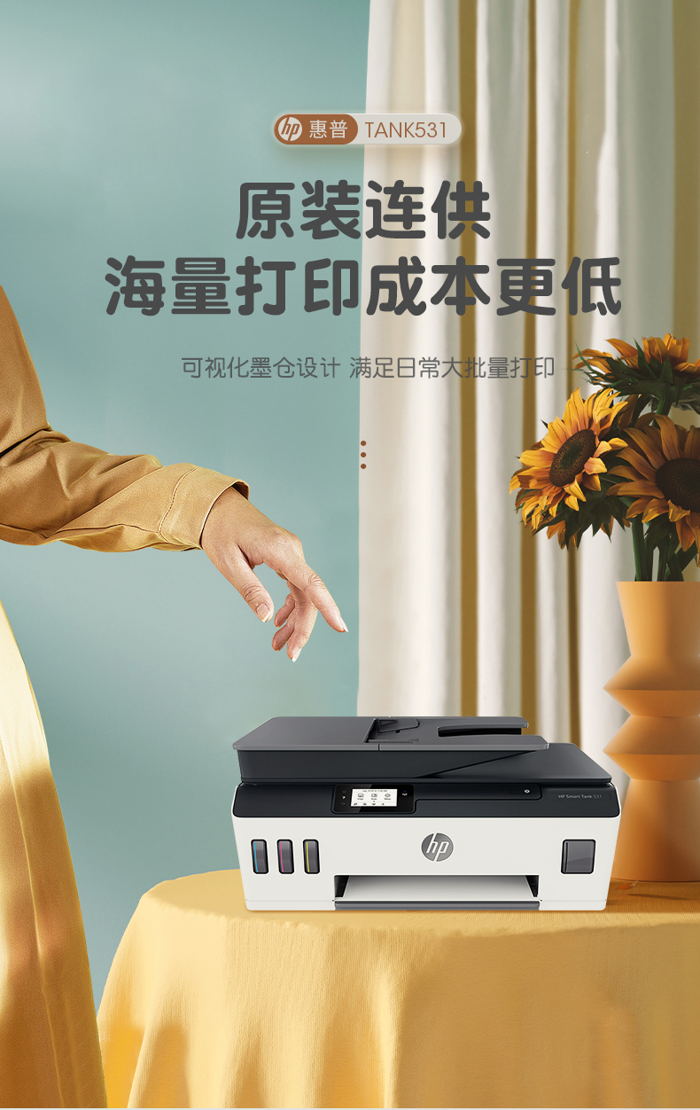 hp惠普tank531打印机家用小型墨仓式连供复印扫描一体机学生作业a4迷你彩色照片可连手机无线喷墨办公商用519