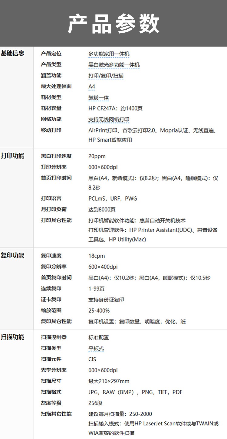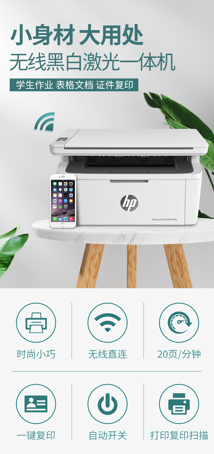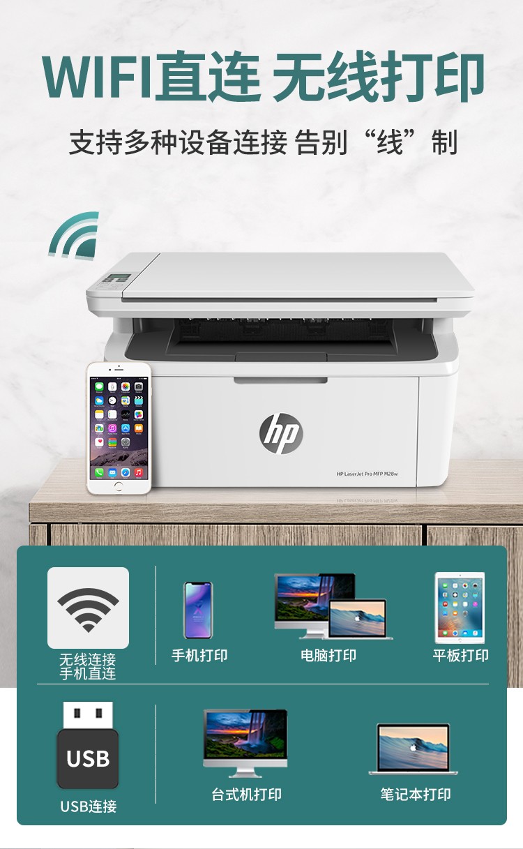 商品名称:惠普M28W黑白激光打印机复印扫描办公室一体机无线家用M15w商务