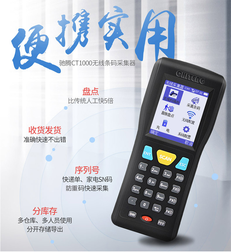 商品名称:驰腾无线盘点机扫描枪数据采集器PDA手持终端二维扫码器快递巴枪 精英版